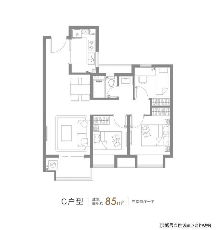 约95㎡的3房2厅2卫户型,但4房适用性倒是现在上海改善栖身前提的起点。